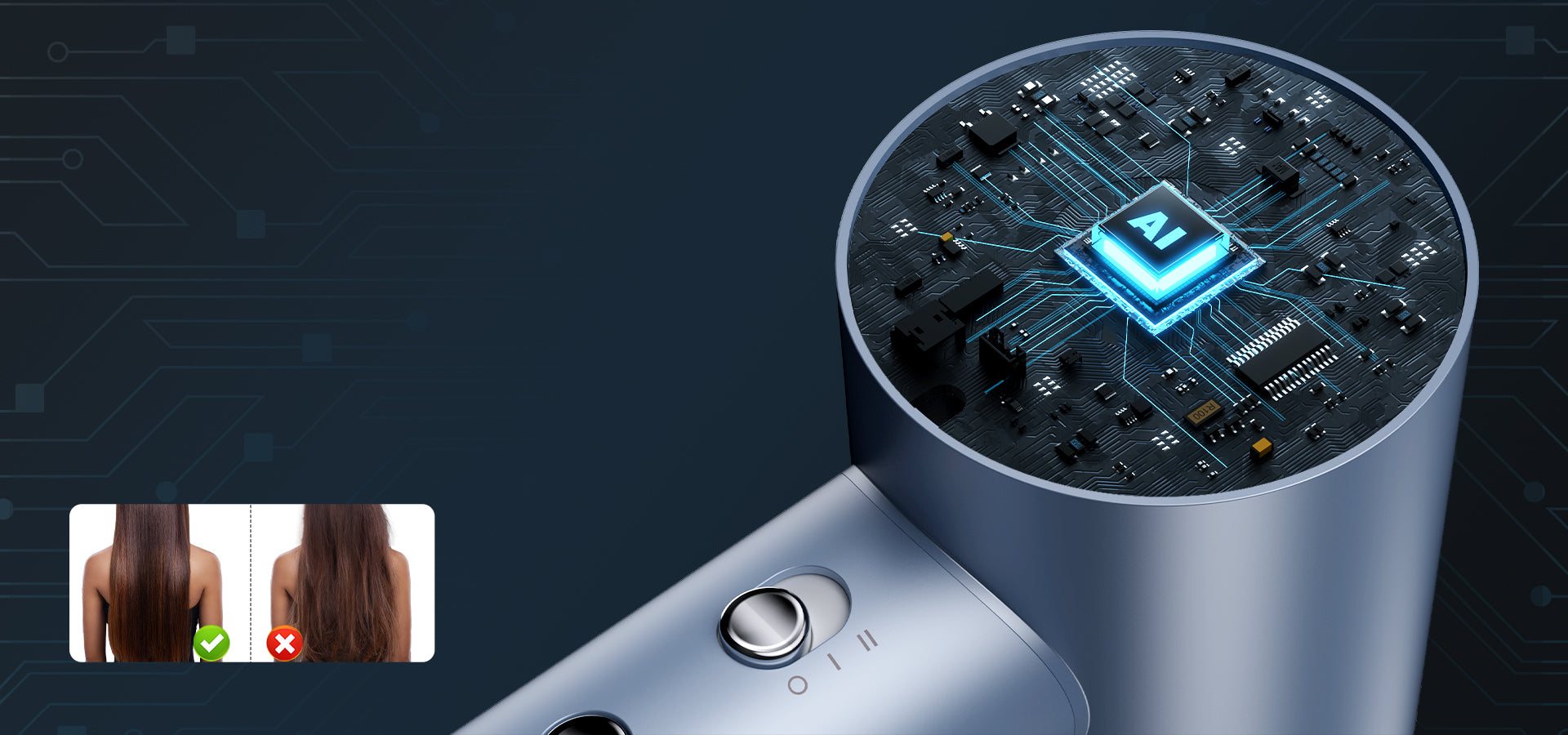 Der intelligente Haartrockner misst die Luftstromtemperatur über 100 Mal pro Sekunde und sorgt so für die richtige Temperatur, um Ihr Haar vor dem Austrocknen der Schuppenschicht, Haarbruch und Kräuseln zu schützen. Das komfortable Föhnen steigert die Haltbarkeit und den Glanz Ihres Haares um 90 %, reduziert Überhitzungsschäden deutlich und verlängert die Haltbarkeit Ihrer Dauerwelle deutlich.