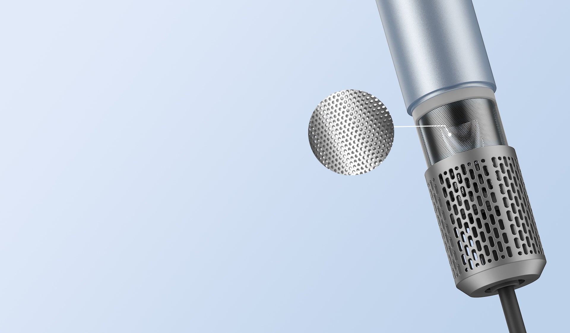 Dank des bürstenlosen Hochgeschwindigkeitsmotors sind keine herkömmlichen Lüfterblätter erforderlich, die die Hauptursache für den Lärm sind. Und der Rotor reibt nicht am Motorgehäuse, was die Geräuschentwicklung des Haartrockners weiter reduziert, zu einer geringeren Geräuschentwicklung von 59 dB und einer längeren Lebensdauer führt.