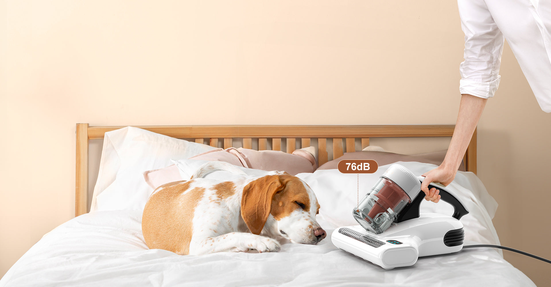 Trotz seiner starken Saugleistung und des kraftvollen Klopfens arbeitet dieser Staubsauger mit einem niedrigen Geräuschpegel von 76 dB. Die hochmolekularen schallabsorbierenden Materialien des Geräts sorgen dafür, dass es Staubmilben und Bakterien ausreichend entfernt, ohne Sie und Ihre Lieben zu stören.