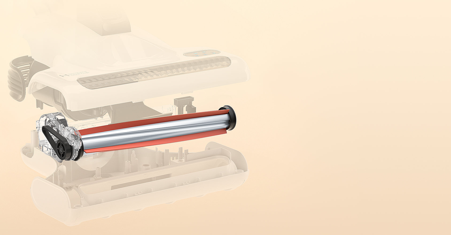 Die patentierte Metallbürstenrolle mit flexiblen Silikonstreifen verfügt über ein dreiteiliges Design. Der linke dreieckige Teil löst durch intensives Klopfen tief sitzende Milben, der mittlere V-förmige Teil verteilt durch gleichmäßiges Klopfen angesammelten Staub und Schmutz, und der rechte dreieckige Teil schüttelt durch kräftiges Klopfen die Allergene heraus und sorgt so für müheloses Saugen. Mit dieser leistungsstarken dreiteiligen Bürstenrolle, die 12.000 Mal pro Minute vibriert, entfernt der J200 Staubsauger mühelos lästige Staubmilben aus Ihrer Matratze, ohne die Stoffe zu beschädigen.
