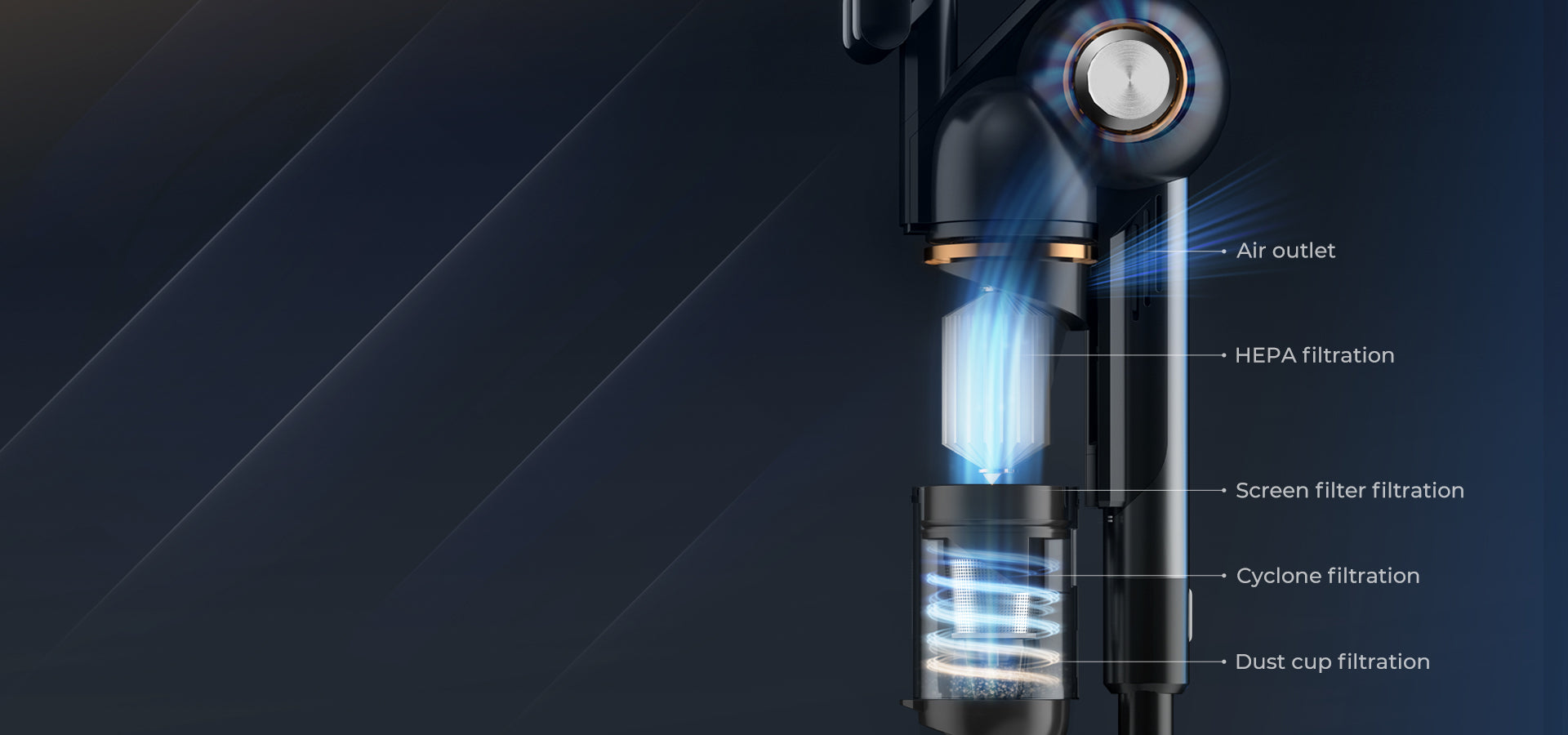 Verbesserter spindelförmiger HEPA – 360° automatisches, kraftvolles Blasen zum Reinigen von Lücken für lang anhaltenden, verstopfungsfreien Gebrauch.