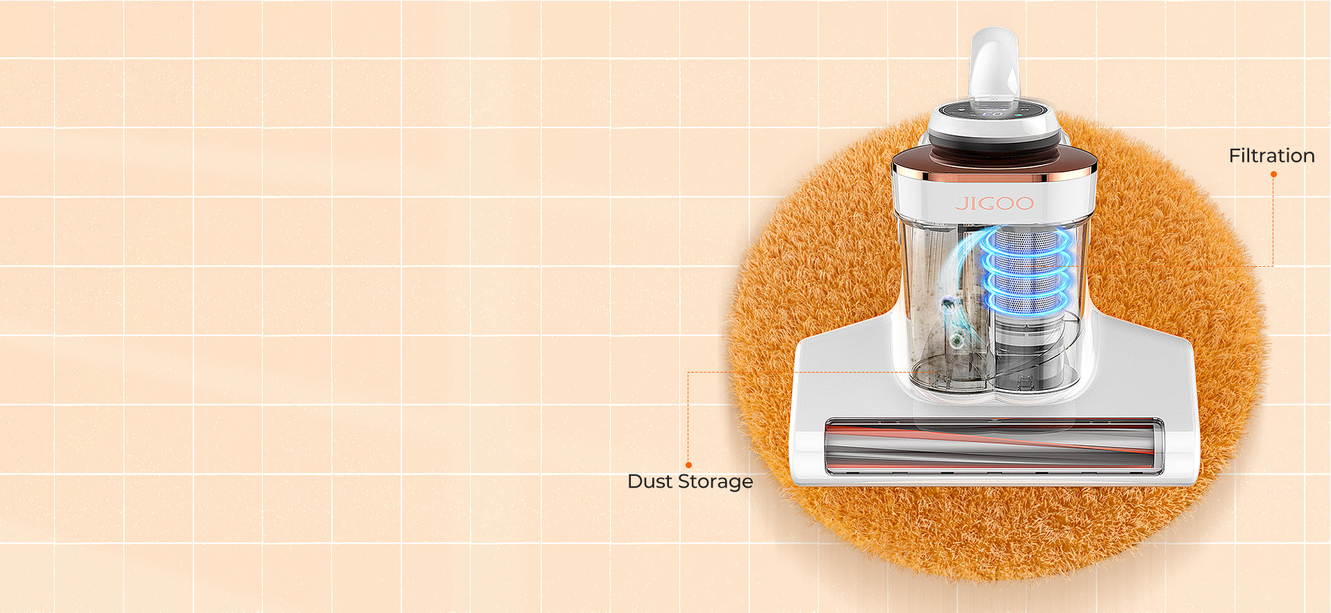 Il JIGOO J300 è progettato con 2 tazze, una dedicata alla filtrazione e l'altra all'accumulo di polvere. L'innovativo sistema a doppia tazza è appositamente progettato per estrarre efficacemente gli acari della polvere e altri allergeni dall'aria, garantendo una filtrazione ottimale dell'aria, evitando l'intasamento del filtro e consentendo un'aspirazione potente e duratura.