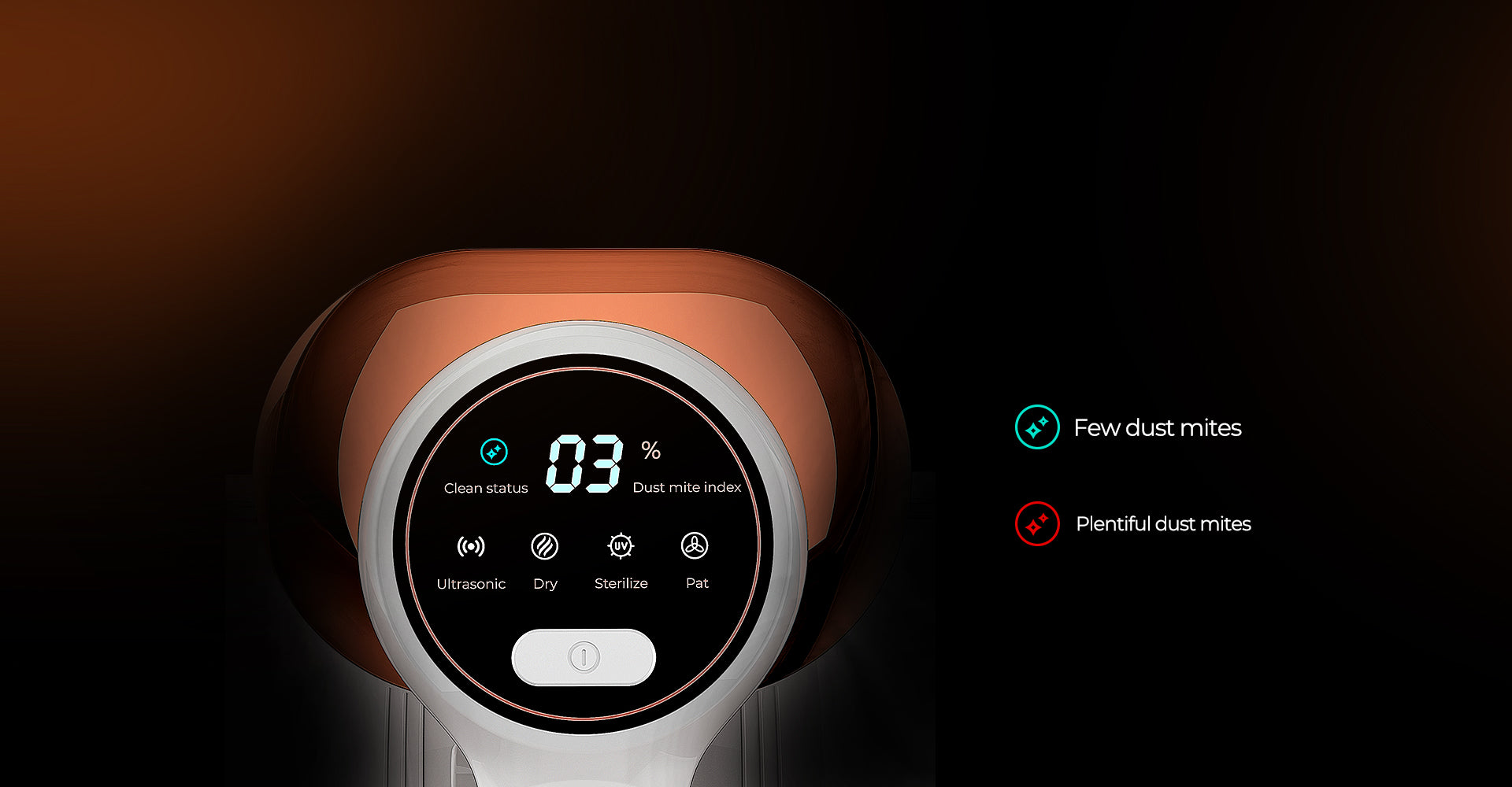 Il sensore intelligente rileva con precisione gli acari della polvere, presentando un indice preciso degli acari della polvere e lo stato di pulizia, rivoluzionando la tua routine di pulizia. Quando la spia dello stato di pulizia diventa verde, indica che la pulizia è stata completata.