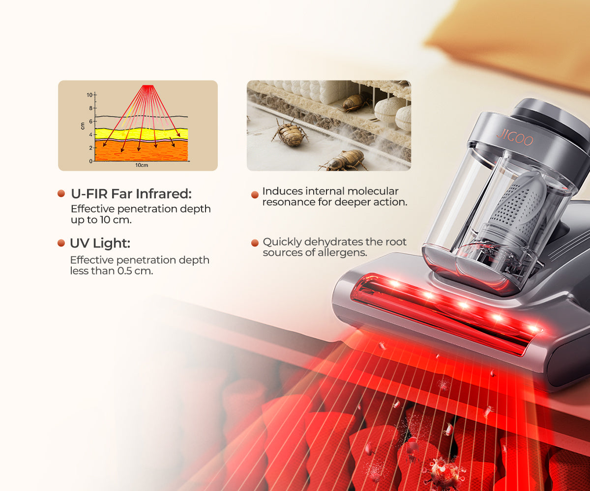 Con una profondità di penetrazione 200 volte superiore a quella della luce UV, la tecnologia U-FIR è molto più efficace nella pulizia profonda e nella rimozione degli allergeni.
