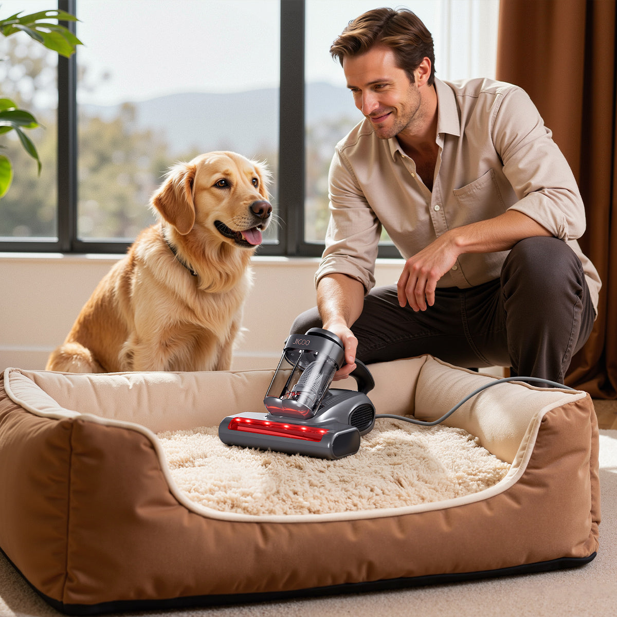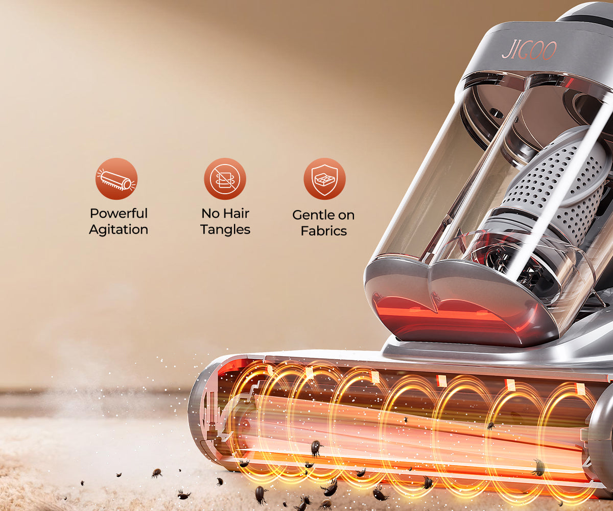 La spazzola rotante in metallo integrata e le strisce in silicone vibrano con forza per agitare le fibre del tessuto, rimuovendo a fondo polvere, allergeni e acari in profondità e prevenendo la formazione di grovigli.