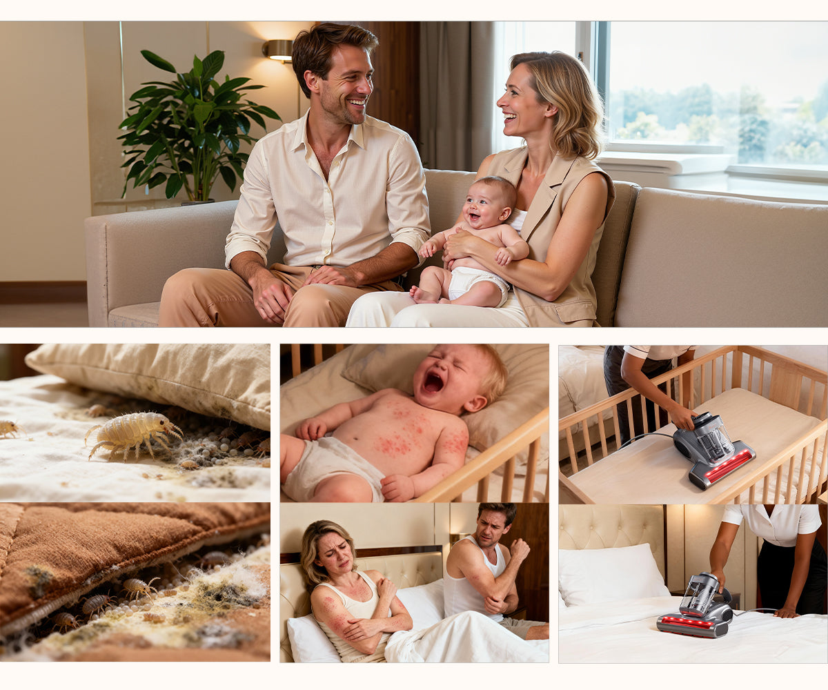 La luce UVC da 253,7 nm danneggia efficacemente la struttura del DNA di batteri e acari della polvere, eliminando il 99,9% degli acari e dei batteri nascosti nei materassi, per un ambiente di sonno puro e igienico.