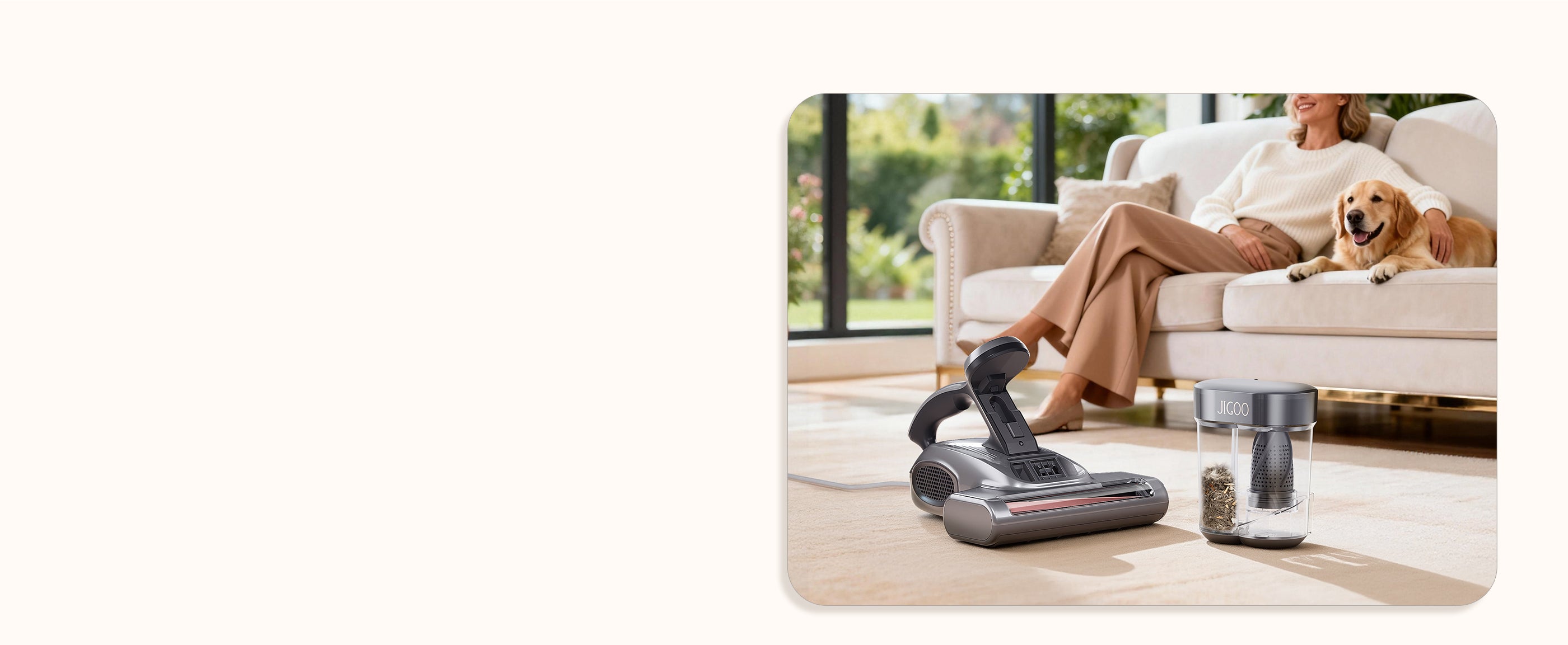 JIGOO J300 Pro è dotato di un innovativo sistema di filtraggio a doppia tazza che separa polvere fine, allergeni e detriti più grandi con elevata precisione. Questo previene gli intasamenti e mantiene un'aspirazione costante durante l'uso. Perfetto per materassi, divani, biancheria da letto e mobili in tessuto, garantisce una pulizia più profonda e igienica, mantenendo le mani completamente libere dalla polvere. Svuota, risciacqua e riutilizza senza sforzo per un'esperienza di manutenzione davvero a mani libere.