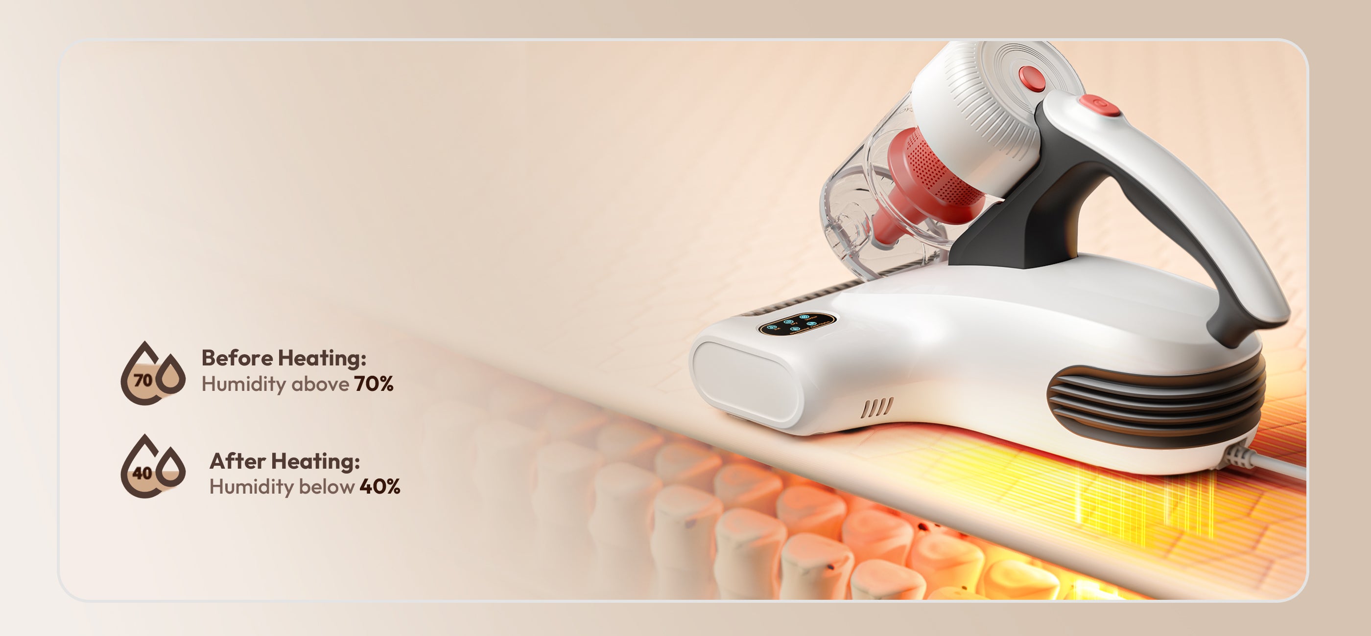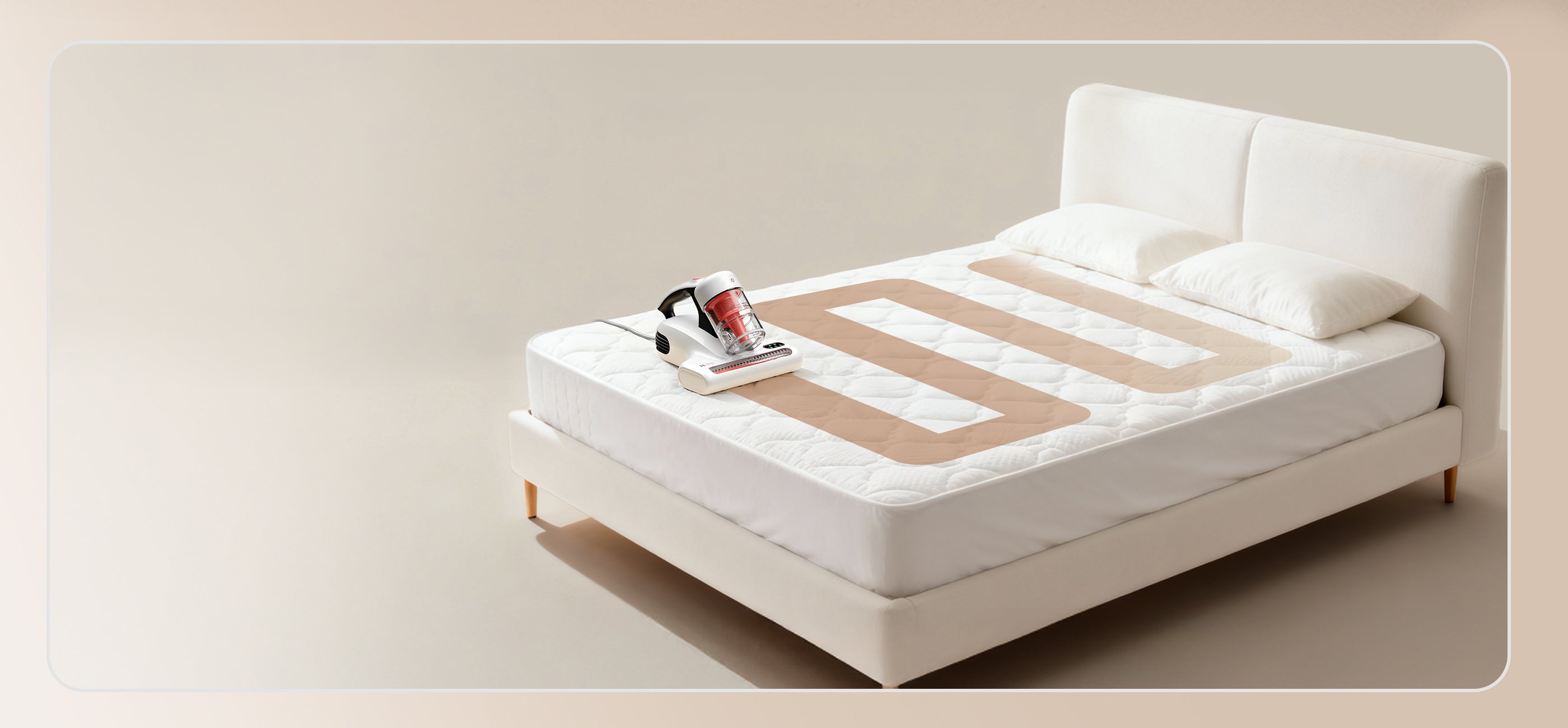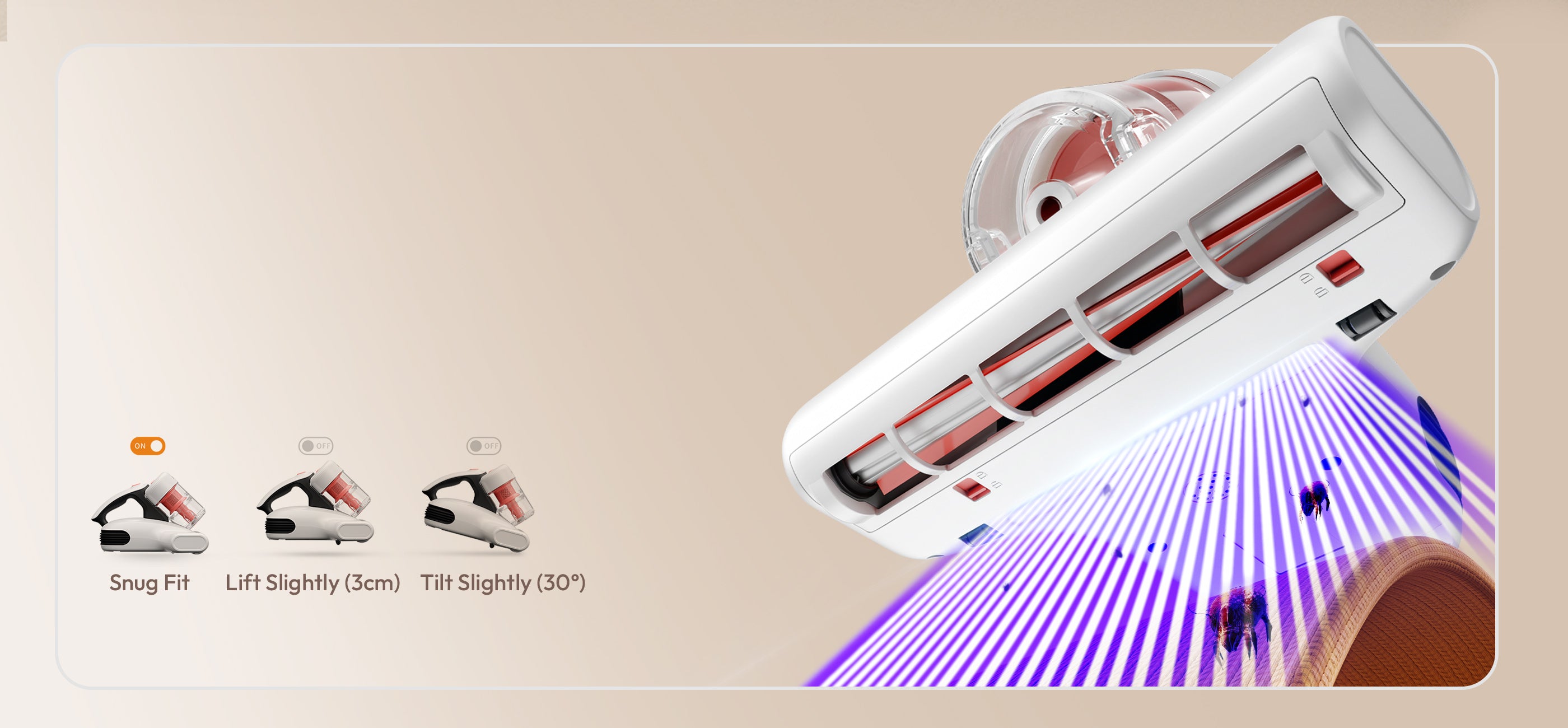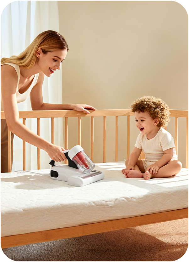 The JIGOO J200 dust mite vacuum cleaner releases UV rays at a wavelength of 253.7nm and blows 60℃ hot air to remove 99.9% of dust mites and bacteria lurking inside the mattress. The UV light sanitizes the fabrics and disrupts the DNA and RNA of dust mites, while the 60℃ hot air works to reduce mite activity and dehumidify your mattress, creating a hygienic sleeping environment. For your safety, the UV light will automatically turn off when the machine is lifted to avoid any potential harm to your eyes.