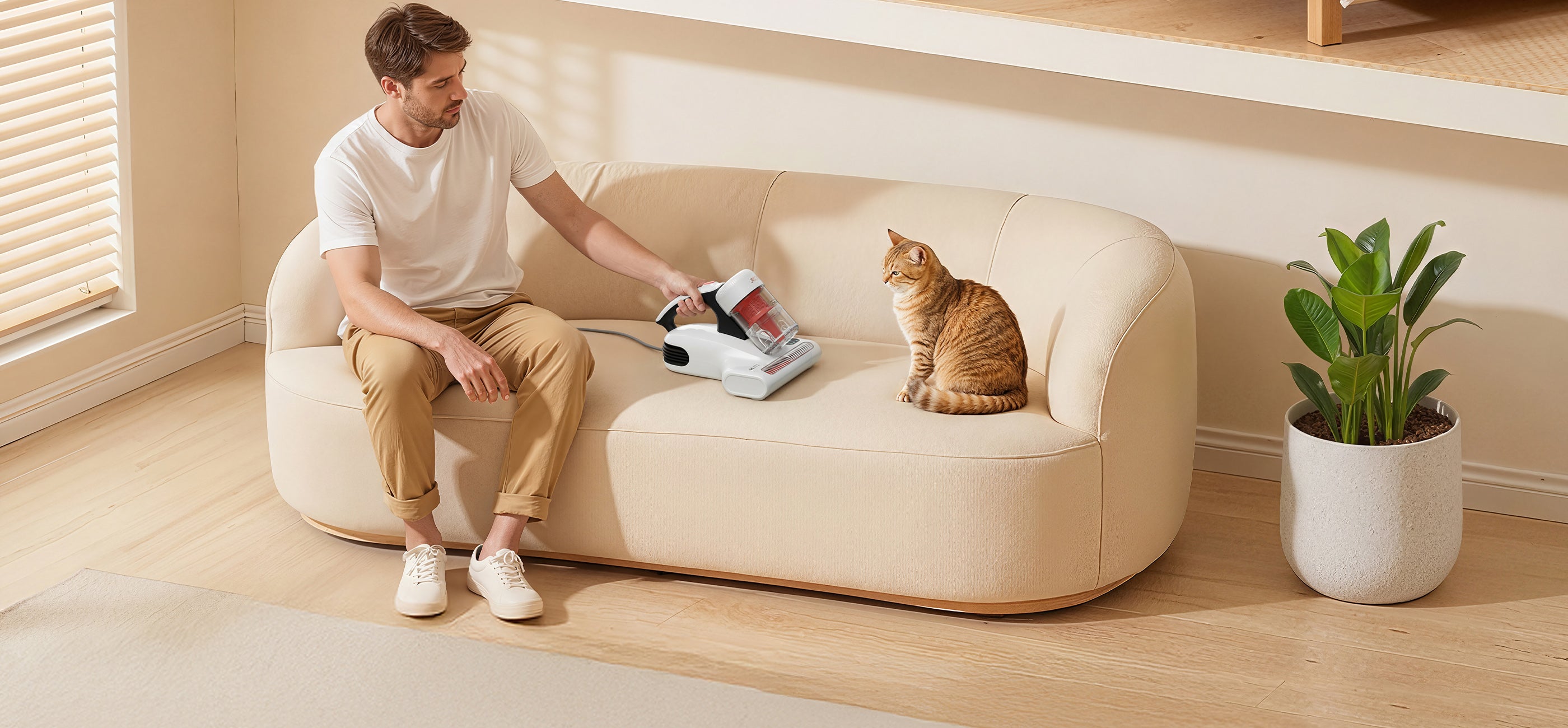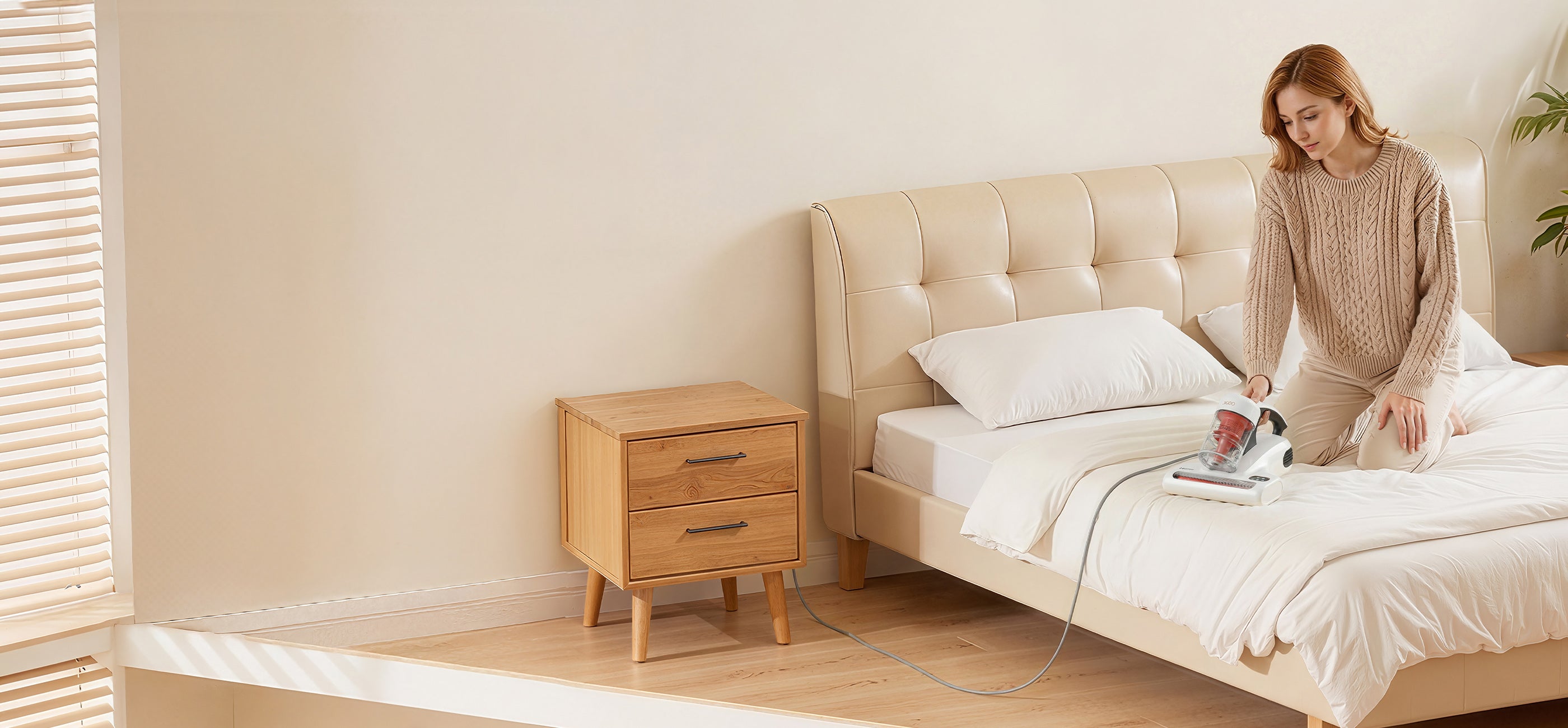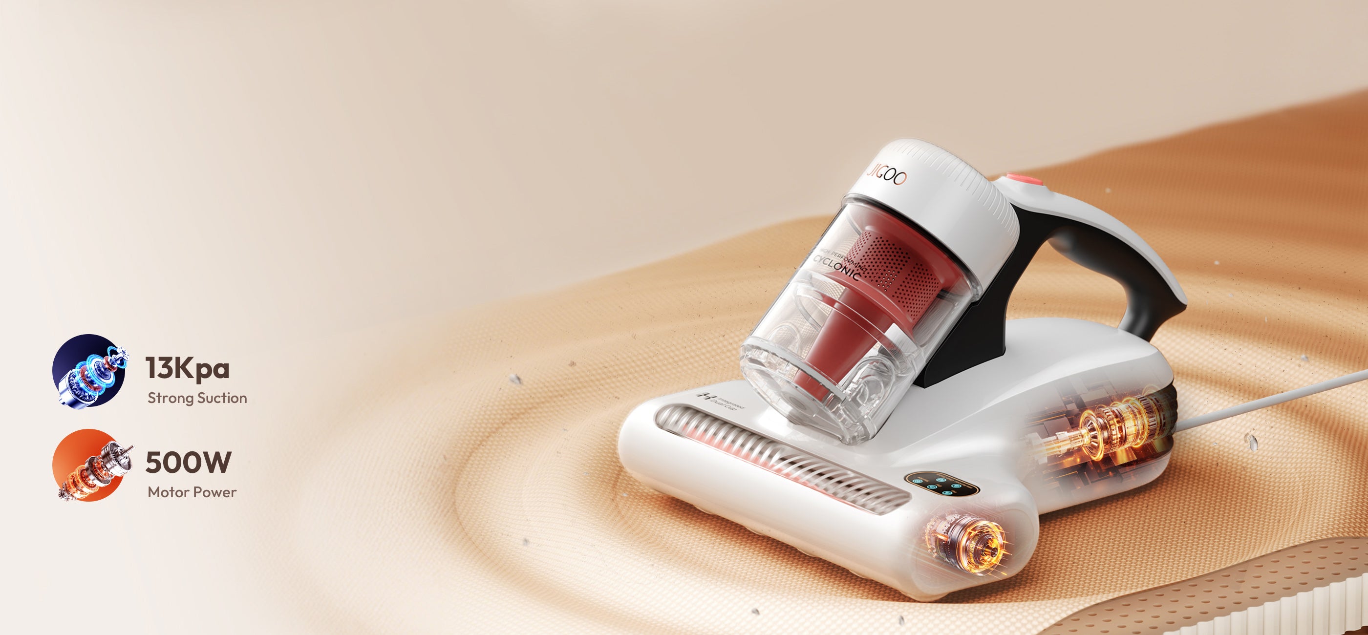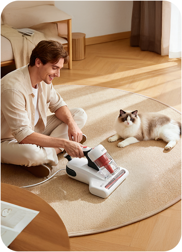 The JIGOO J200 dust mite vacuum cleaner releases UV rays at a wavelength of 253.7nm and blows 60℃ hot air to remove 99.9% of dust mites and bacteria lurking inside the mattress. The UV light sanitizes the fabrics and disrupts the DNA and RNA of dust mites, while the 60℃ hot air works to reduce mite activity and dehumidify your mattress, creating a hygienic sleeping environment. For your safety, the UV light will automatically turn off when the machine is lifted to avoid any potential harm to your eyes.