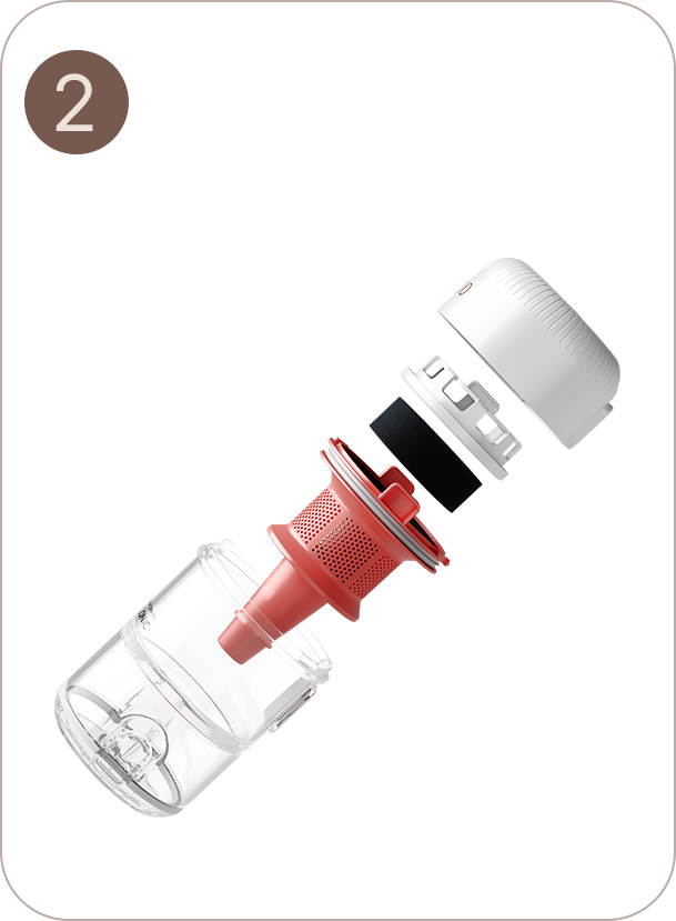 The JIGOO J200 incorporates an integrated dual-cup system, with one cup dedicated to filtration and the other to dust storage. The cyclone filter cup effectively filters dust mites while releasing clean air, achieving the highest filtration efficiency. This unique design minimizes the risk of filter clogs for an extended period of robust suction. The spacious dust cup is separated from the filter cup and offers ample storage capacity, enabling you to tackle dust mites on your bed, sofa, and carpet all at once without interruption.