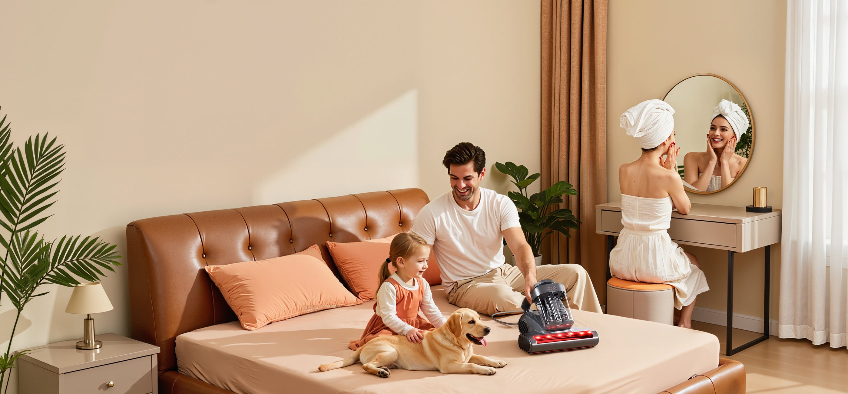 Driven by a high-speed 550W motor, the vacuum generates up to 14 kPa of steady suction, effectively removing hidden dust, mites, and debris in a single pass. It thoroughly cleans mattresses, sofas, cushions, and other fabric surfaces, saving time and effort while restoring comfort and hygiene to your home. Even thick or dense fabrics are handled efficiently, giving you fast, professional-grade results.