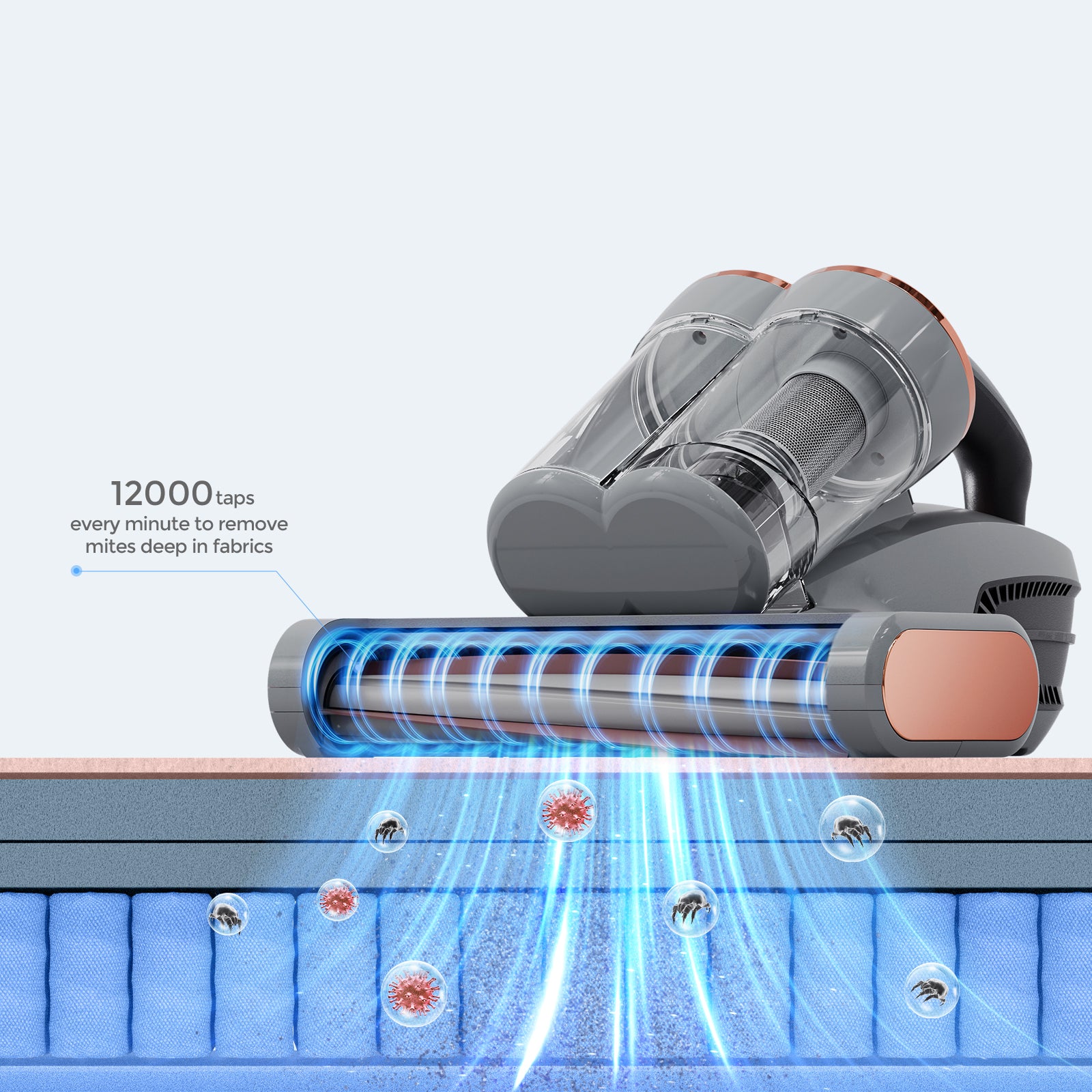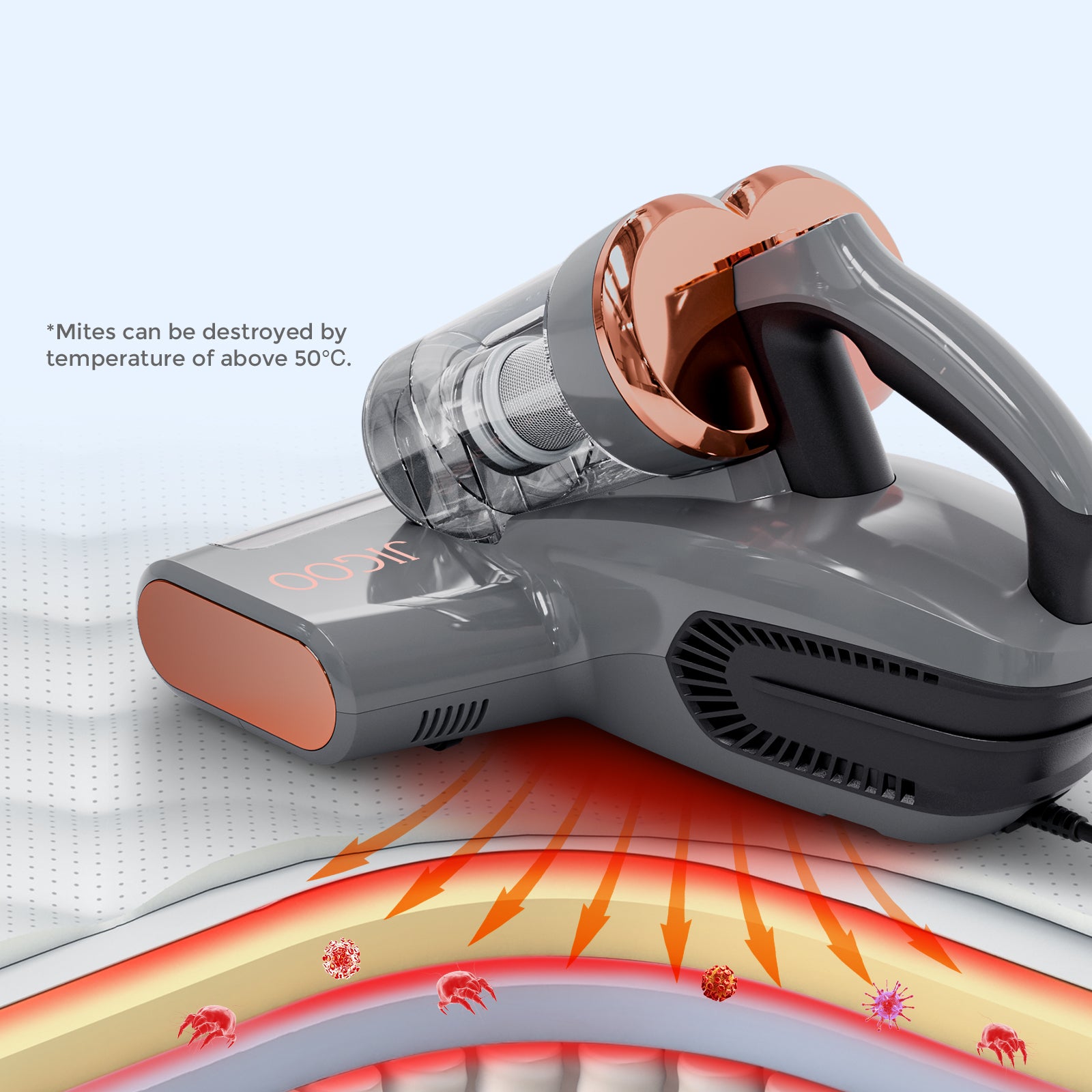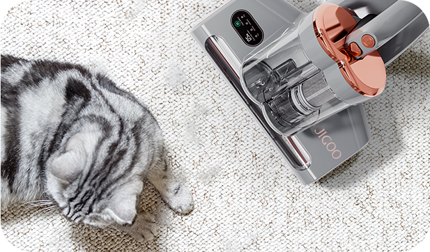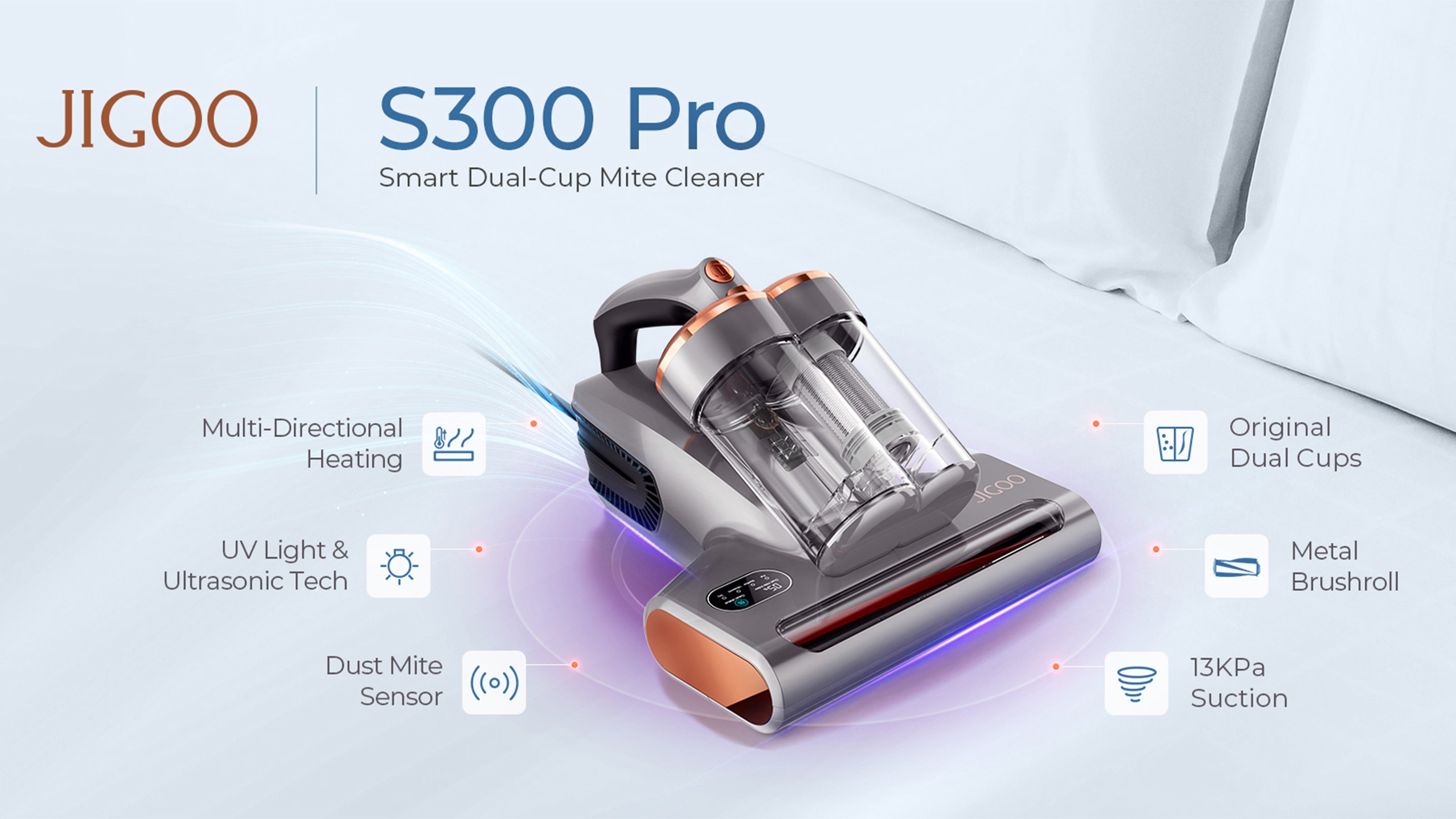 The JIGOO S300 Pro releases 253.7nm UV wavelength that can eliminate 99.99% of mites and bacteria deep in the mattress and emits ultrasonic waves to stop the reproduction of mites for a more thorough and long-lasting clean. And for your safety, the UV light will automatically turn off when the machine is lifted to avoid harm to your eyes.