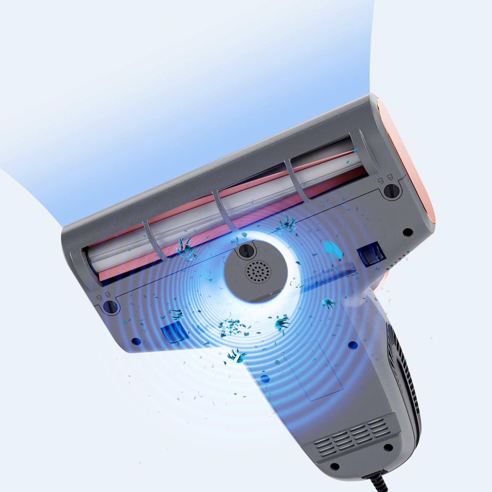 S300 Pro is capable of multitasking for a more thorough cleaing, including patting by the metal brushroll, sterilizing by the UV light, repelling dust mites by ultrasound and drying mattresses by heat.