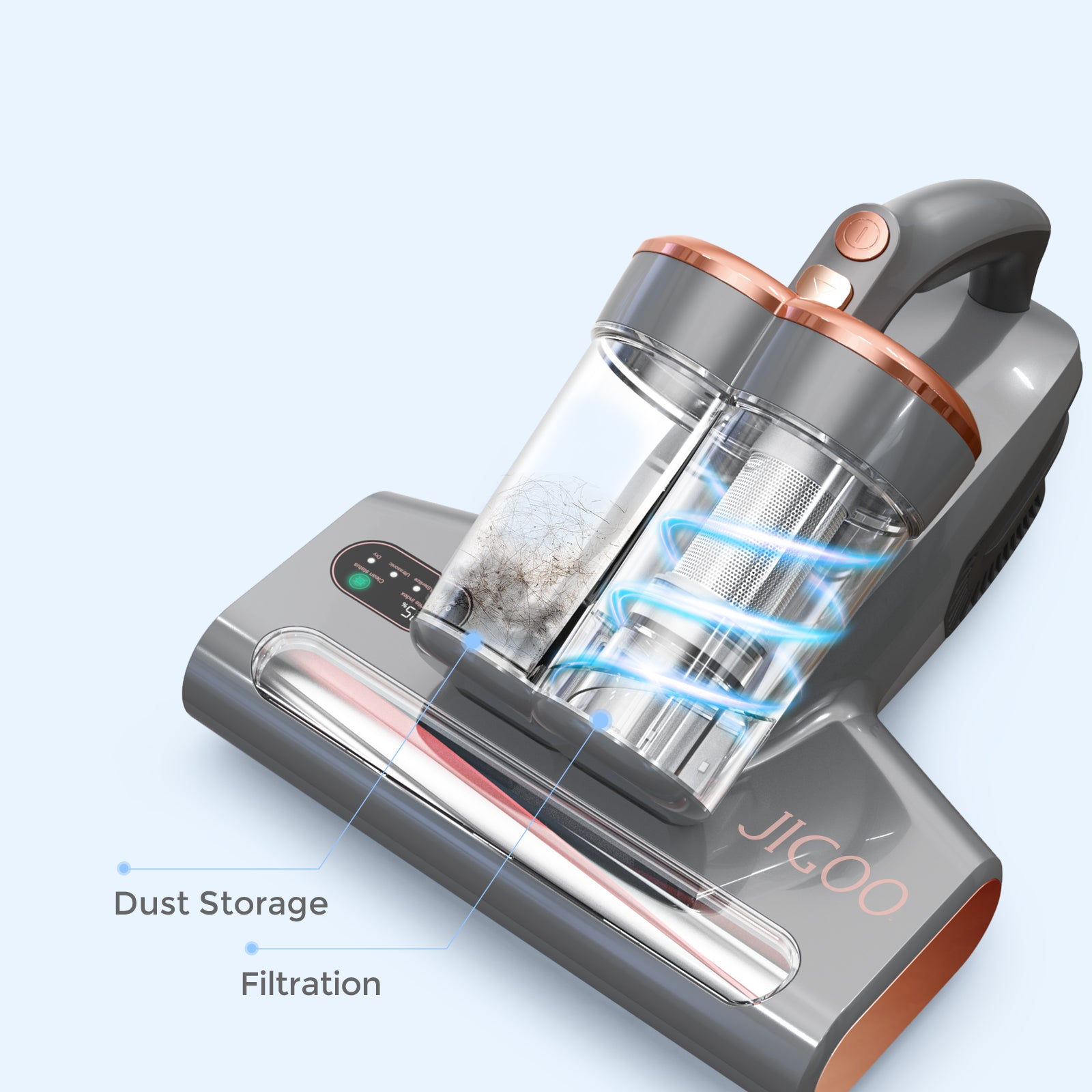The JIGOO S300 Pro is designed with 2 cups - one dedicated to filtration and the other to dust storage. The original dual-cup system is specially engineered to effectively extract dust mites and other allergens from the air, ensuring optimal air filtration and avoiding filter clogging.