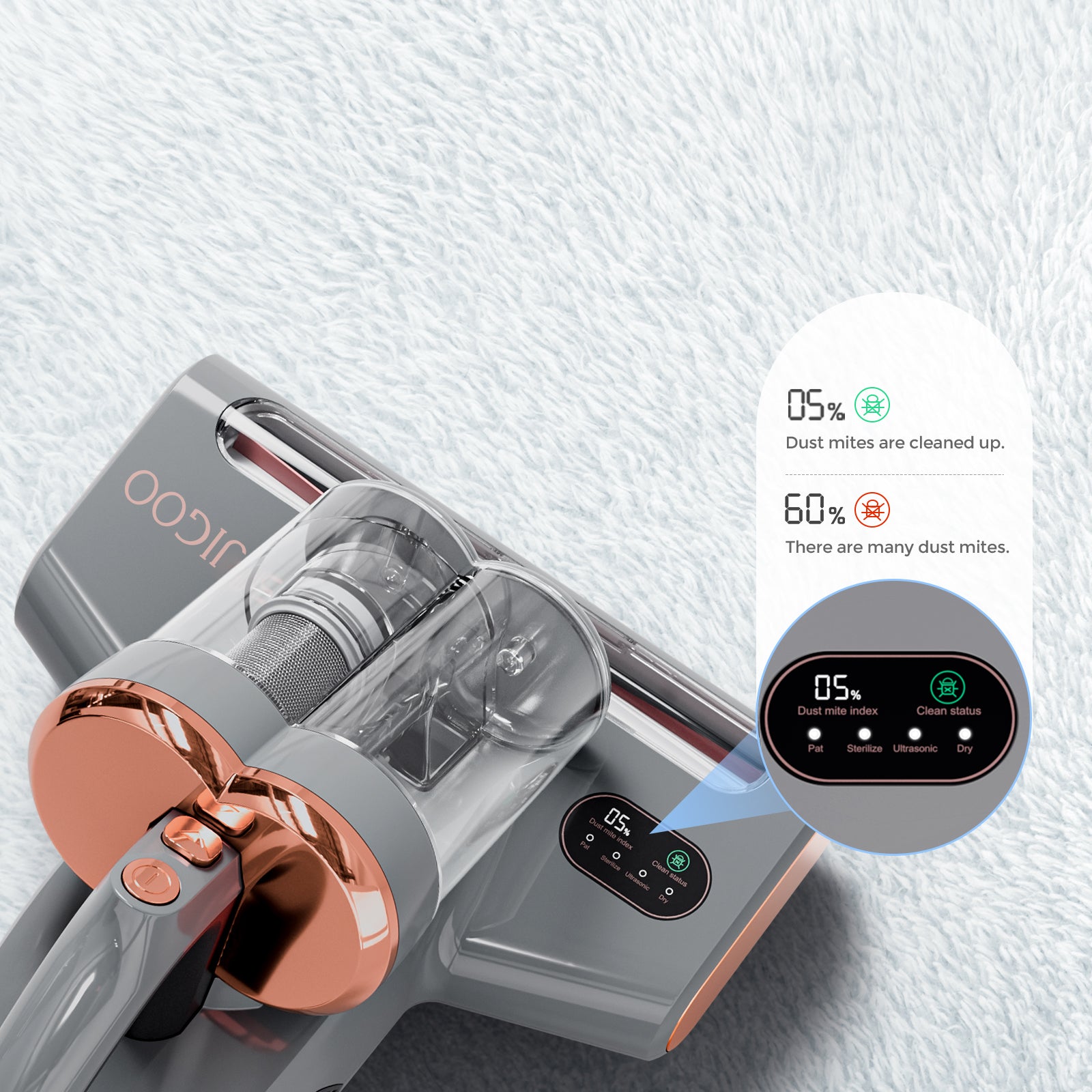 The intelligent sensor can calculate the dust mites in the environment with high precision and display the dust mite index and cleaning status to help you clean in a truly smart way. When your mattress is clean, the cleaning status light turns green, indicating a successful clean environment.